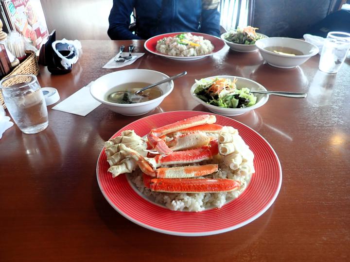 名物のカニピラフがお目当てです・・・