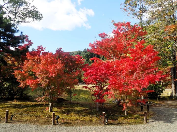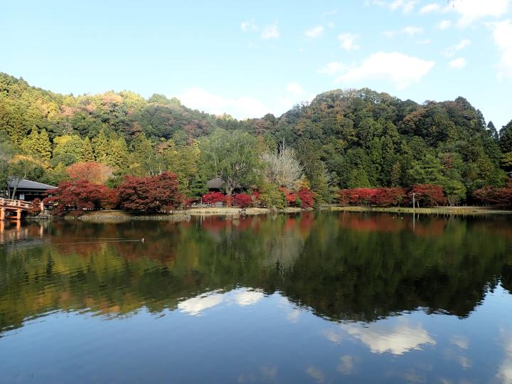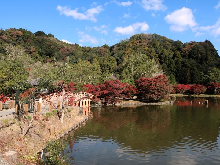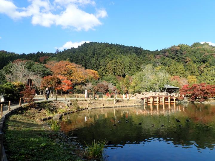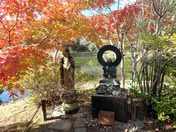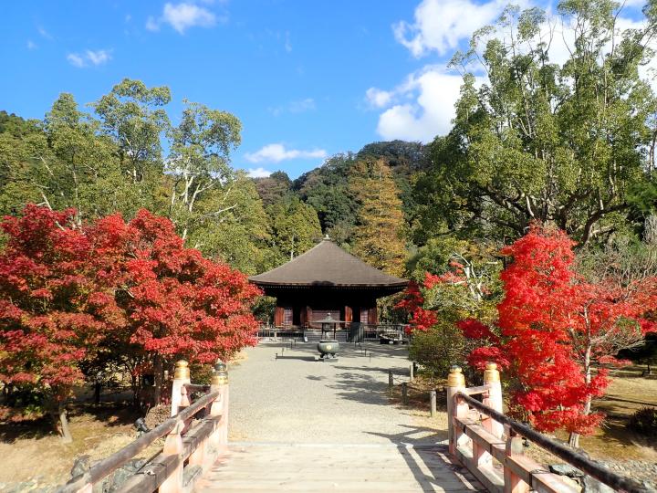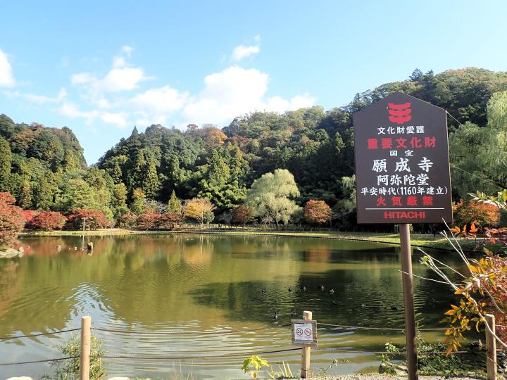 国宝願成寺白水阿弥陀堂と浄土庭園の紅葉です。