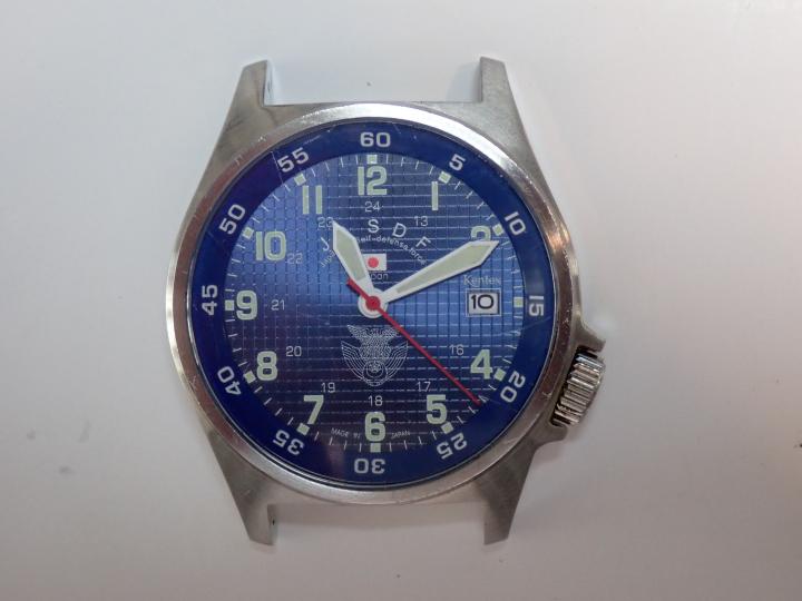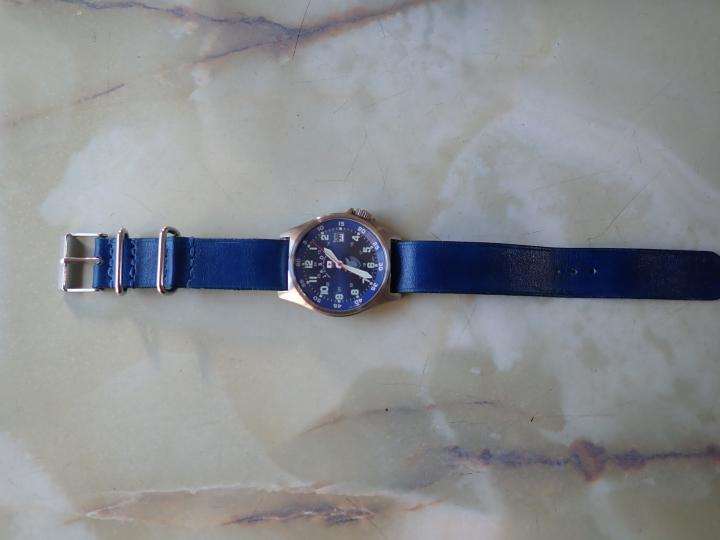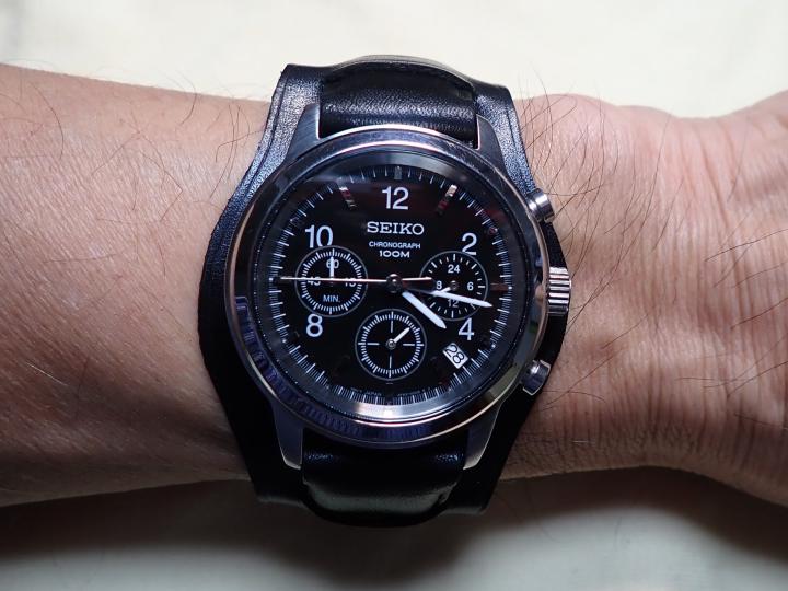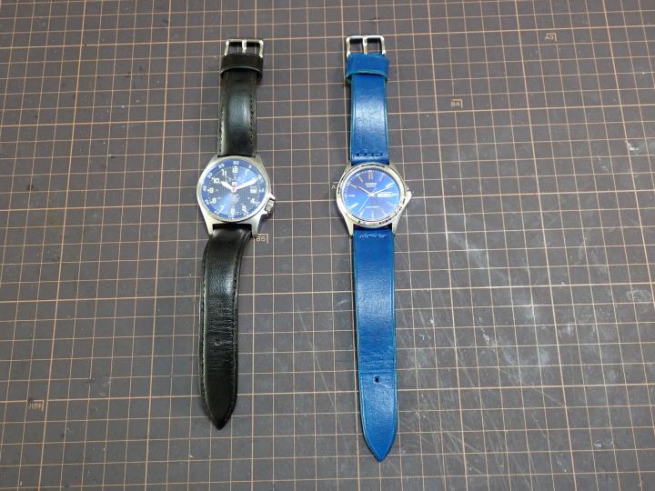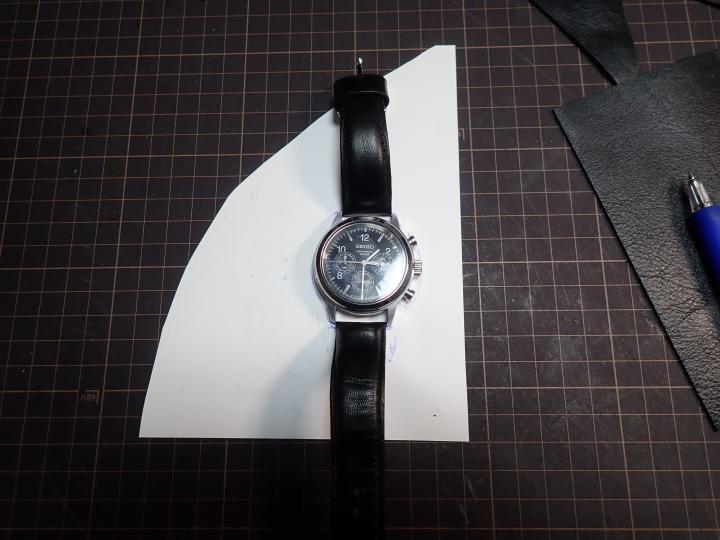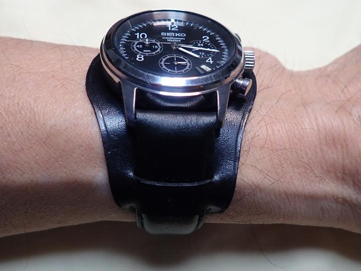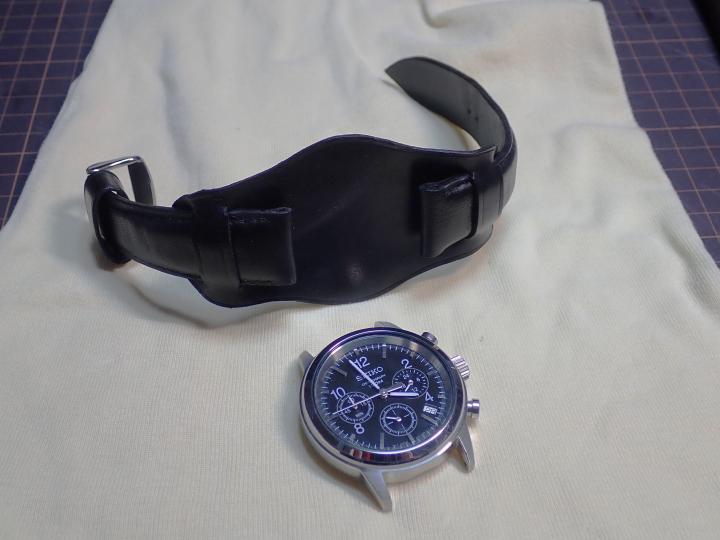 自衛隊腕時計用に作った黒の革バンドがあるので、これを使ってやってみた。