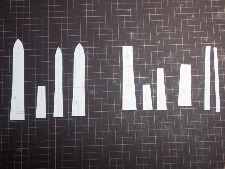 カレンダーの裏紙から図面用厚紙に型を取りなおします。