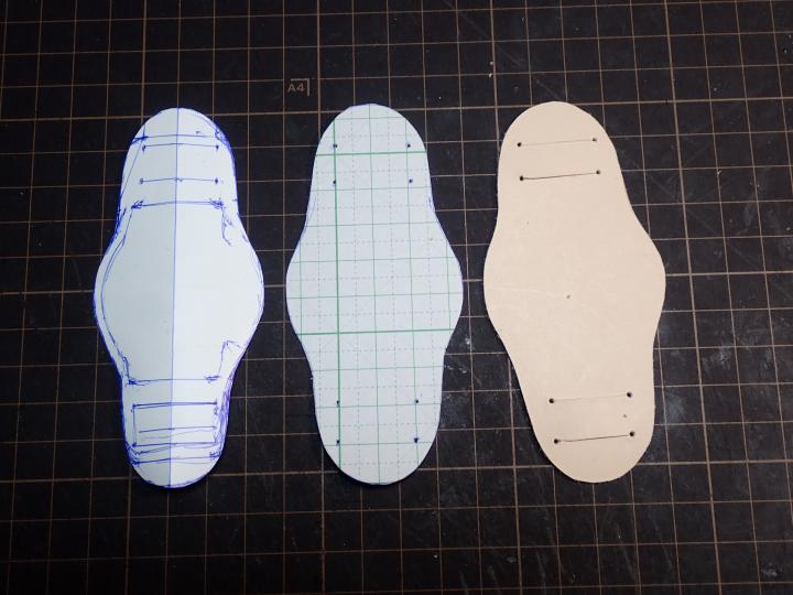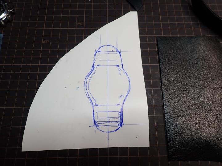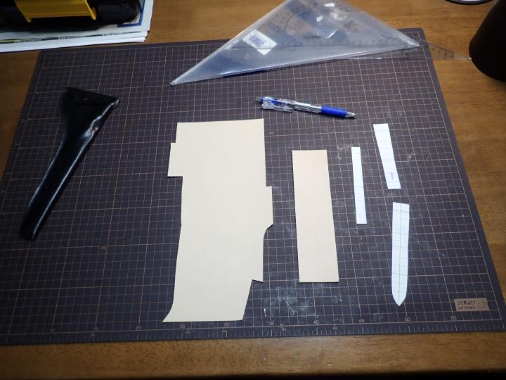 一応型紙を作って、ヌメ革1.5ミリ厚を使います。